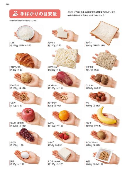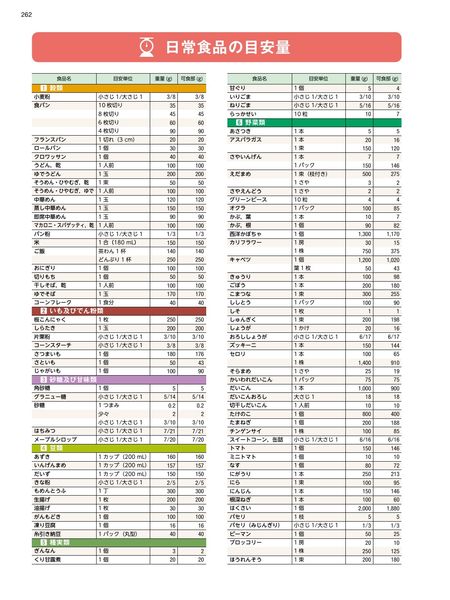 ・調理に役立つ「日常食品の目安量成分表」「調味の基本」「手ばかりの目安量」