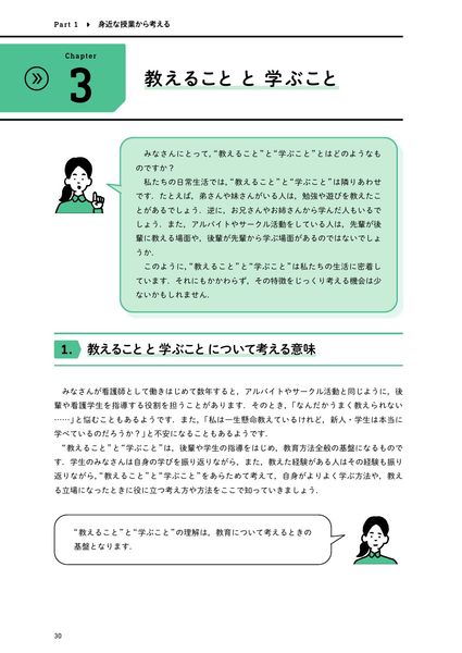 基礎教育課程で求められる学習内容をコンパクトに編集した「看護教育学」テキスト