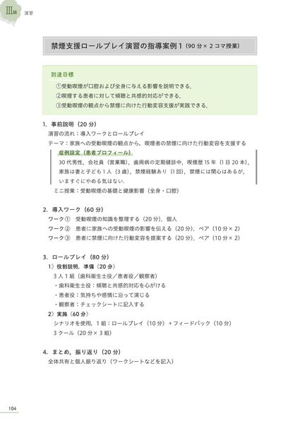 ◆授業で演習を設計・運営する際に役立つロールプレイ演習例2つと、WHOが推奨する簡易禁煙支援ロールプレイング学習動画付き。
