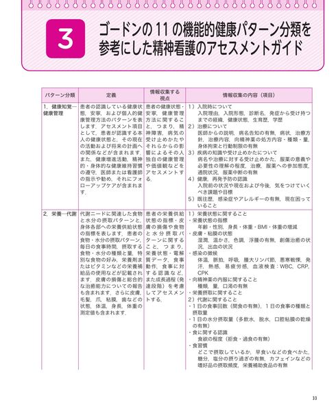 3 ゴードンの11の機能的健康パターン分類を参考にした精神看護のアセスメントガイド