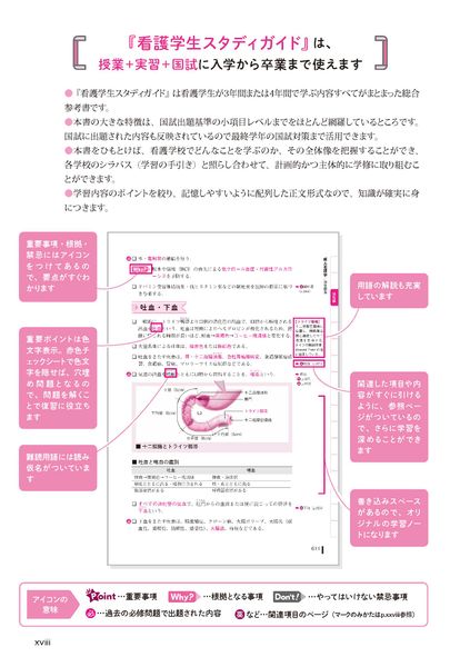 また、実習でよく質問される内容や、国試に出題された内容も充実しており、