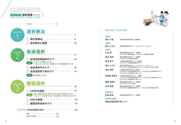 本書は、ケアの流れをリアルに再現した写真や50分の動画、イラストなどを活用して、血液透析・腹膜透析ケアの実際を臨床現場目線で実践的に解説しています。