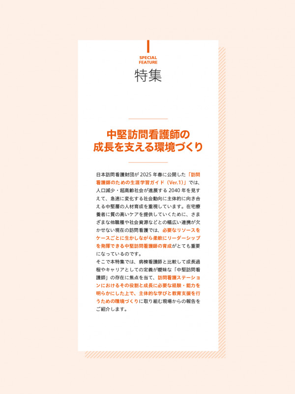 特集 中堅訪問看護師の成長を支える環境づくり
