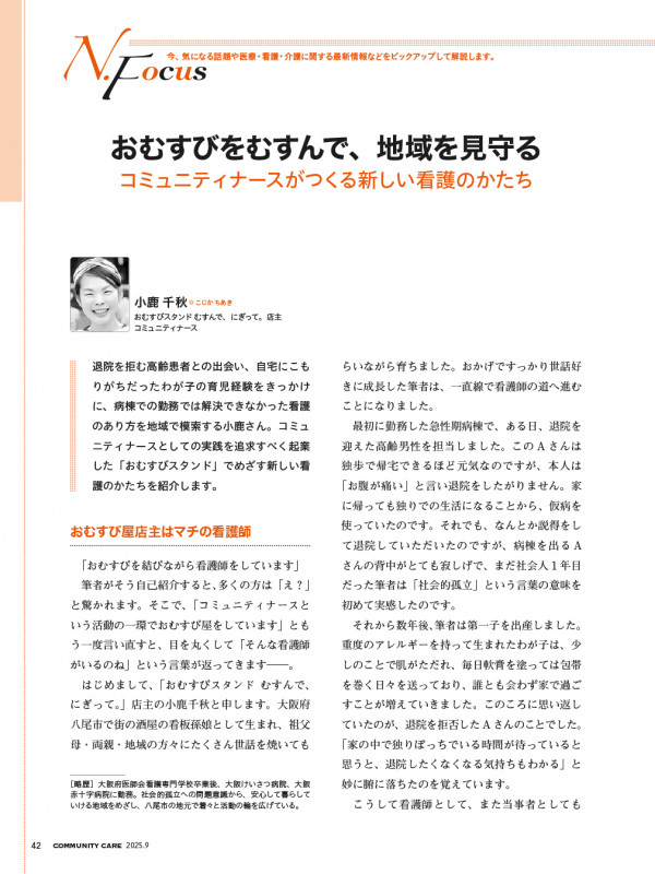 ●N.Focus おむすびをむすんで、地域を見守る コミュニティナースがつくる新しい看護のかたち/小鹿 千秋