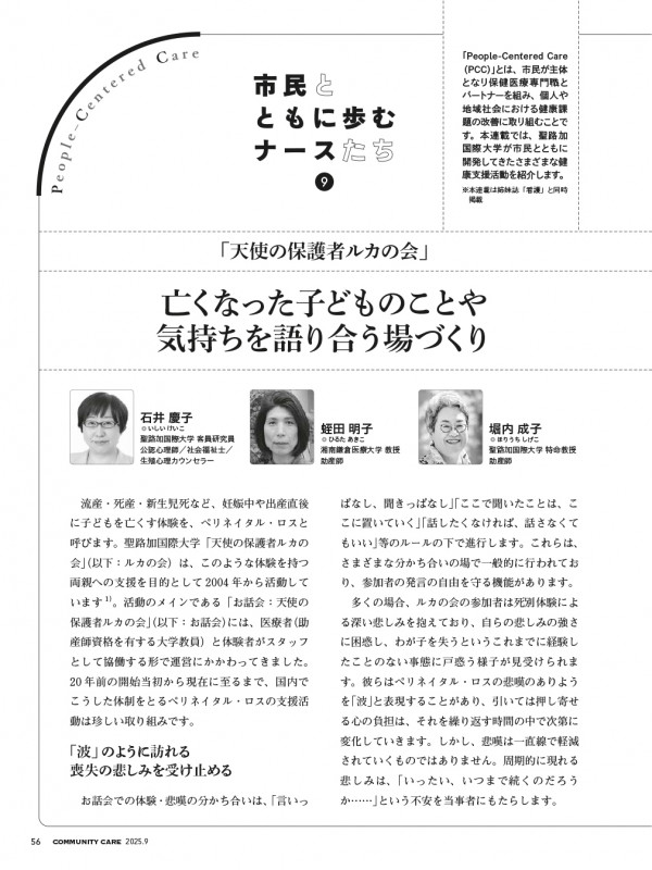 「天使の保護者ルカの会」 一亡くなった子どものことや気持ちを語り合う場づくり/石井 慶子・蛭田 明子・堀内 成子