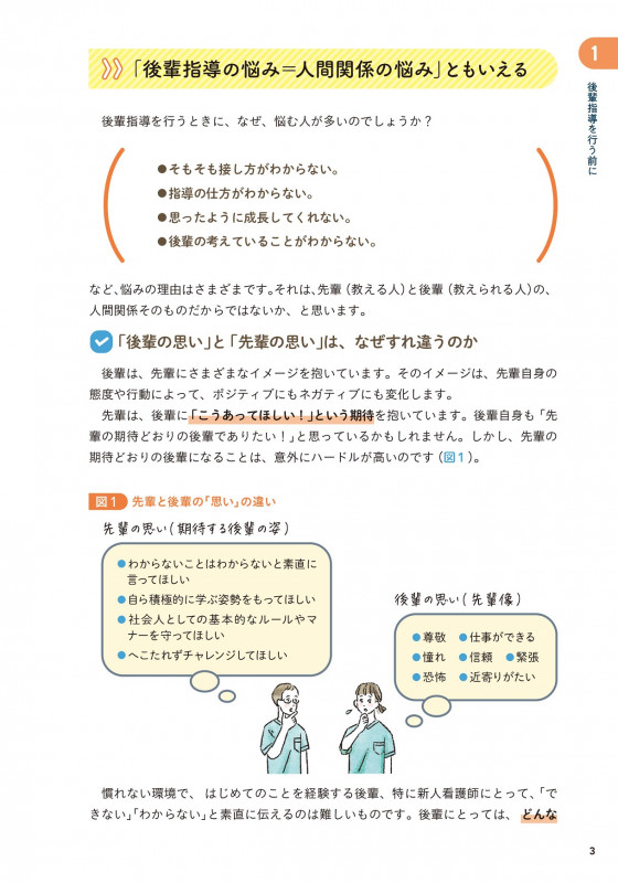 先輩ナースから寄せられた「後輩指導で、先輩たちが迷うこと、困っていること、悩んでいること」を取りあげ、解決のヒントを解説しました。